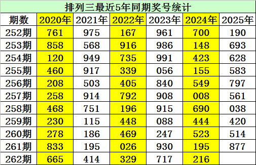金心排列三第2025262期推荐: