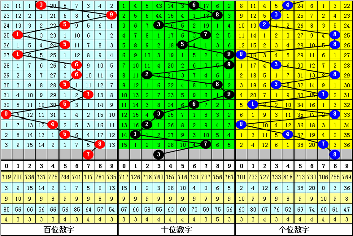 百位:上期开出8,偶数,奇号最近两周热出,奇号遗漏1期,本期回补,关注7。