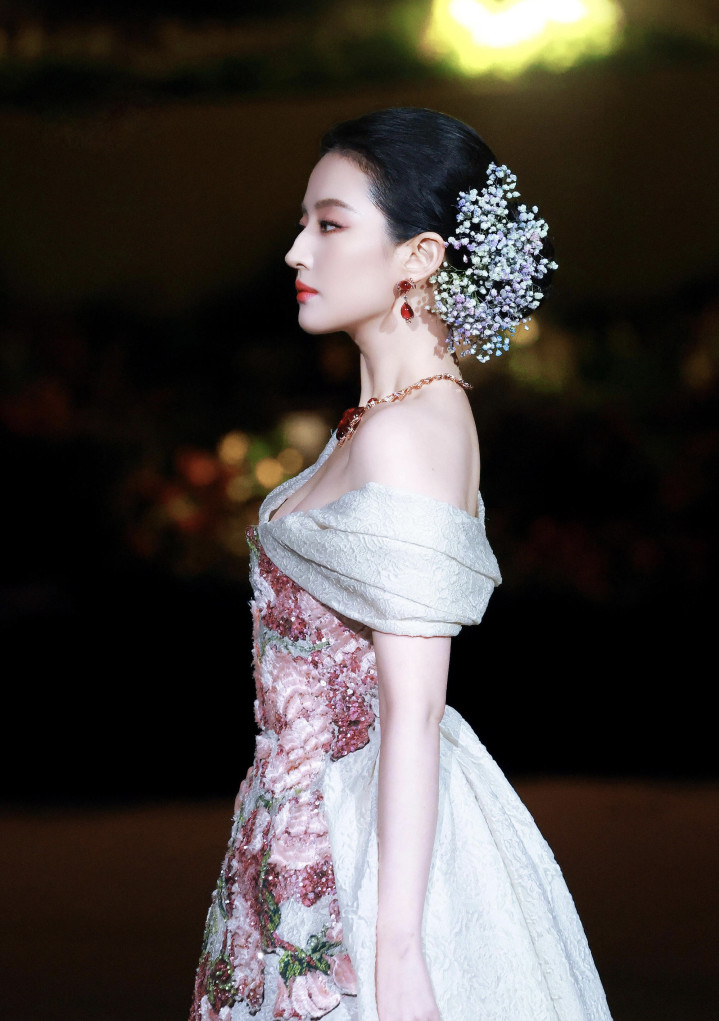 此次合作以“繁花盛开之境”为主题,将刘亦菲标志性的“花神”气质与英伦花园的浪漫意象巧妙融合。广告大片中,她身着柔纱长裙漫步于虚拟花园,裙摆翻飞间与花瓣共舞,无需过多产品露出,仅凭氛围感便传递出香氛的灵动与诗意。这种视觉表达既呼应了她《玫瑰的故事》中黄玫瑰的惊艳演绎,也延续了红毯上满天星造型的清雅韵味,被网友盛赞“人即香氛,气韵天成”。