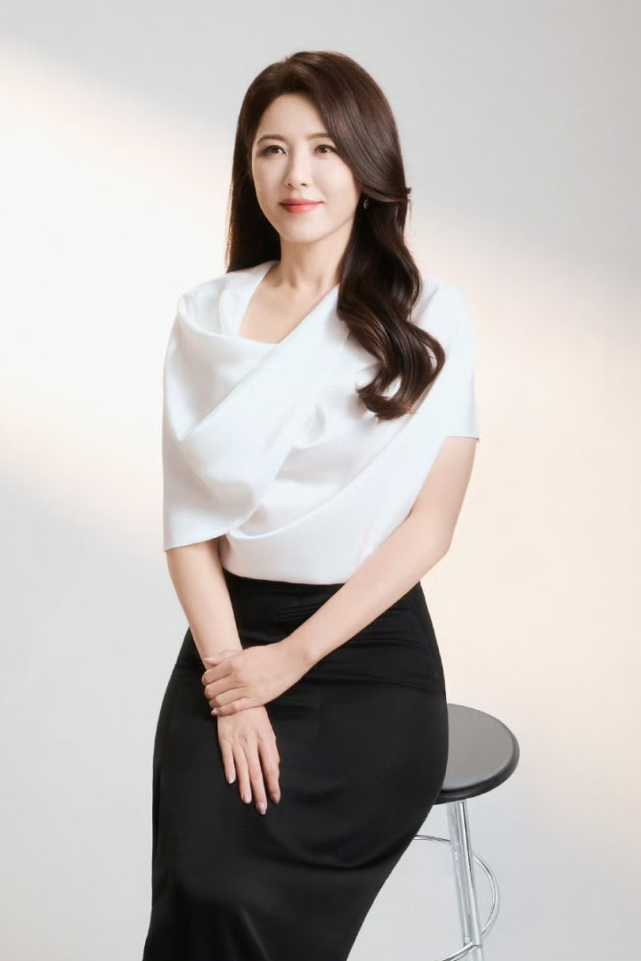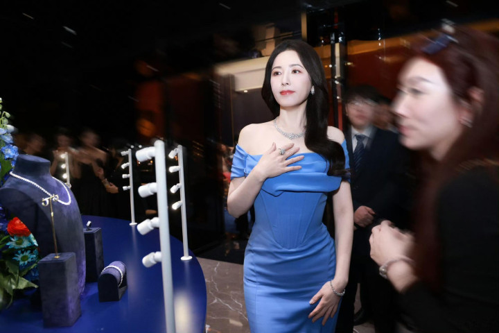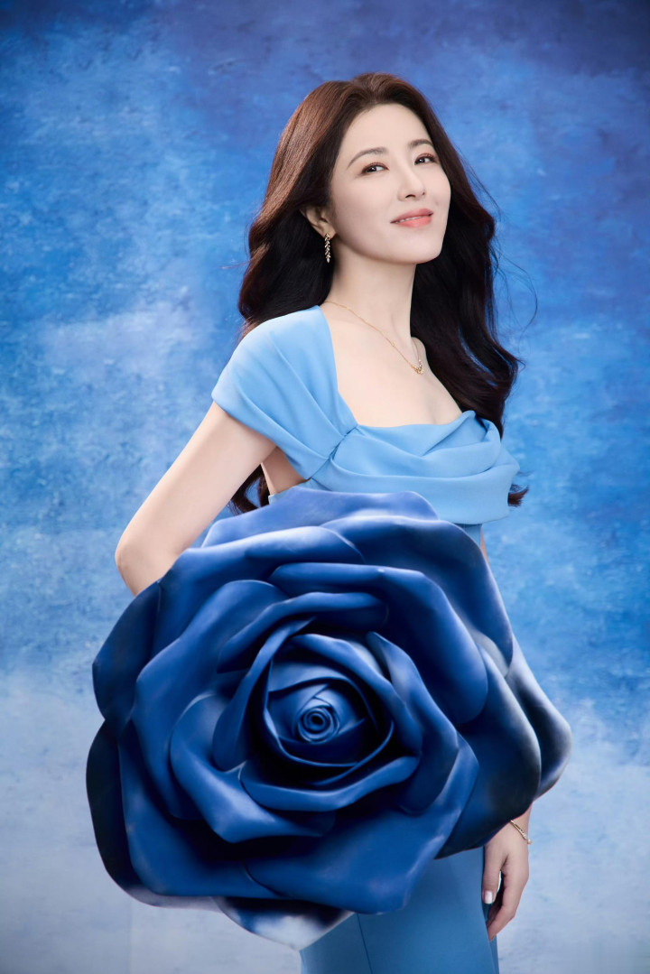 慵懒波浪长发轻披肩头,搭配简约金色配饰,在蓝色背景的映衬下,满是“清晨湖面水汽”般的清新氧气感,将成熟女性的松弛优雅表达得恰到好处。