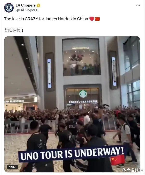 正如哈登所说那般,爱是相互的,球迷们对哈登的喜爱也是接近疯狂状态,就连快船都官推惊讶,晒出了哈登中国行视频,画面中人潮涌动,快船写道:中国球迷对詹姆斯-哈登的爱简直太疯狂了!不仅如此,官推还特地加了中文字:登峰造极。