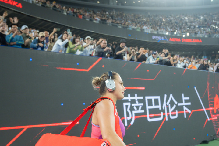 图为萨巴伦卡在2024年武汉网球公开赛女单决赛前入场。新华社记者 杜子璇 摄