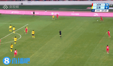 伤停补时1分钟。上半场比赛结束,湖北0-0江苏。