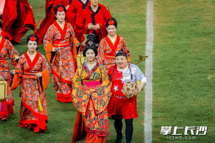 当晚的暖场表演精彩纷呈。动感活力秀《星城“上场”青春当“燃”》由长沙市第一中学、立信中学、市一中初级中学共同演绎,点燃现场气氛;古风情景剧《戏策湘超》汇聚得乐社、长沙歌舞剧院等多家单位力量,得乐社笑星何晶晶以“辛追闺蜜”的趣味身份现身,逗笑全场,用独特形式展现湘超魅力。