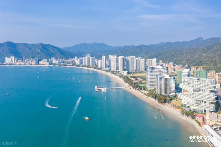 沙扒湾比邻月亮湾,沙滩长约1.5公里,头枕风光秀丽的白额岭。