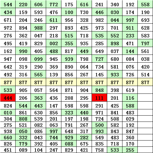 另外,历史上直选号码877开出10次,其下期开出奖号为:533、905、057、564、871、904、848、398、619,前后10期分别开出号码: