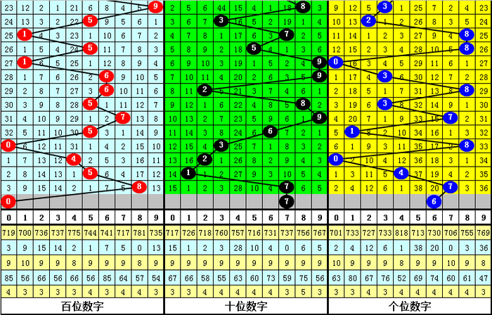 排列三最近十期分别开出奖号:877、514、420、038、561、797、583、628、693、190,其中号码奇偶比为16:14,奇偶号码出现比例相当;号码大小比为17:13,大小 号码基本持平;号码012路比为12:9:9,0路号码热出。